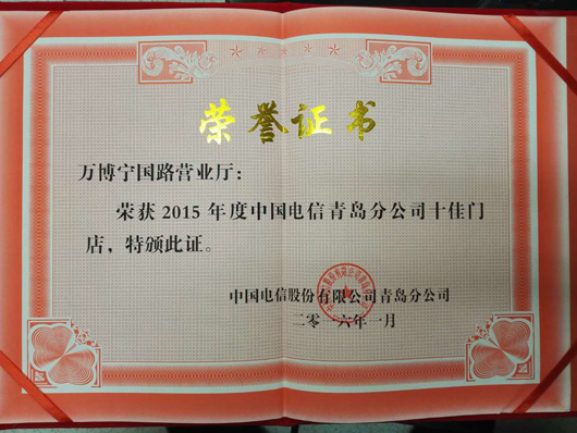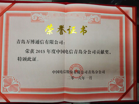 青岛万博通信有限公司牢固树立“专家服务、服务专家”的理念,坚持“质量第一、服务至上”,竭诚为广大客户提供最优质、最专业的服务。经过一年的努力,终于再传捷报。在2016年1月6日召开的中国电信青岛分公司2016年专营渠道合作伙伴大会上,万博一举夺得“2015年度中国电信青岛分公司贡献奖”和“2015年度中国电信青岛分公司十佳门店”两项大奖,既为2015年度工作画上一个完美的句号,又为2016年开启全新篇章。